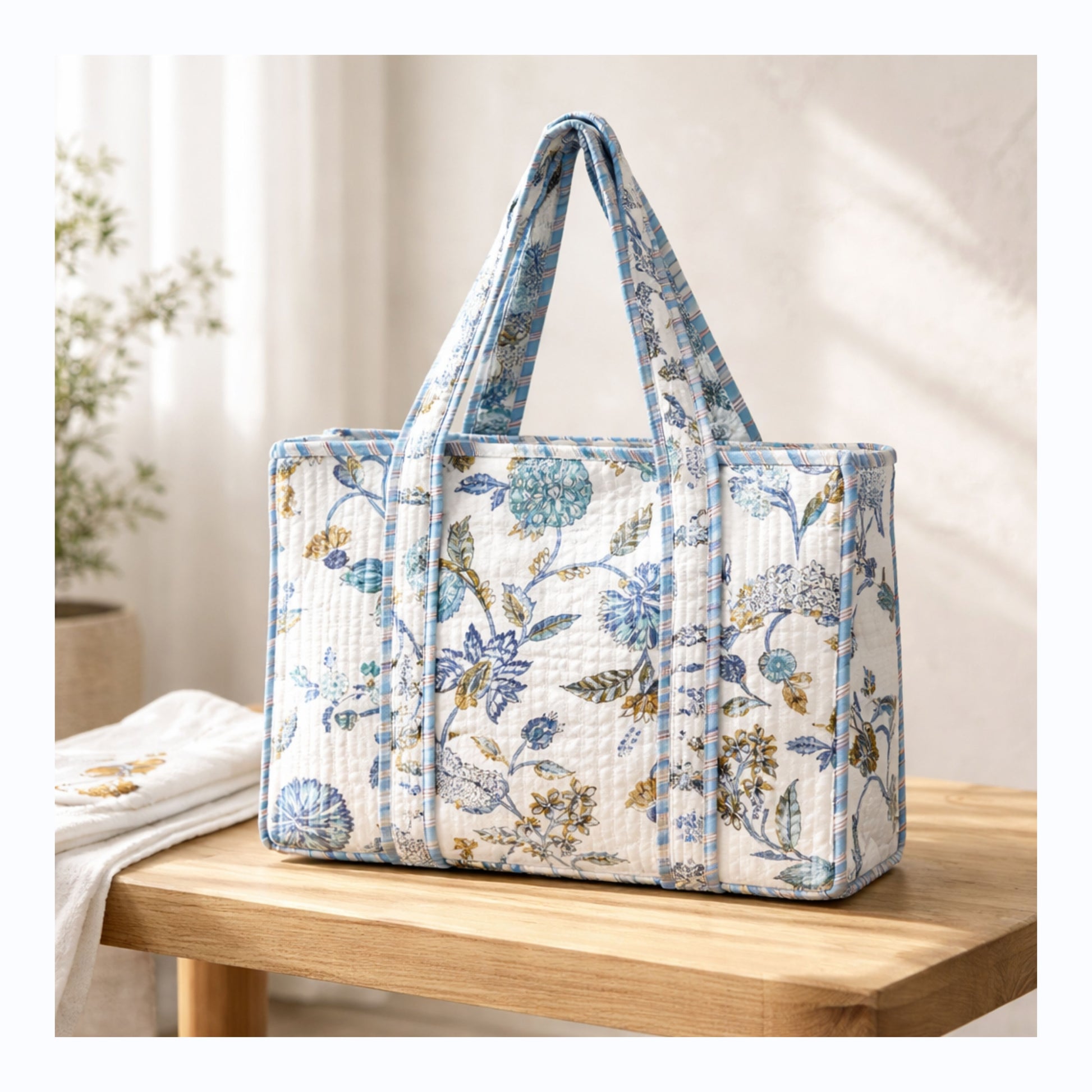 100% Cotton Block Print Quilted Tote Bag – Handcrafted | Eco-Friendly & Stylish