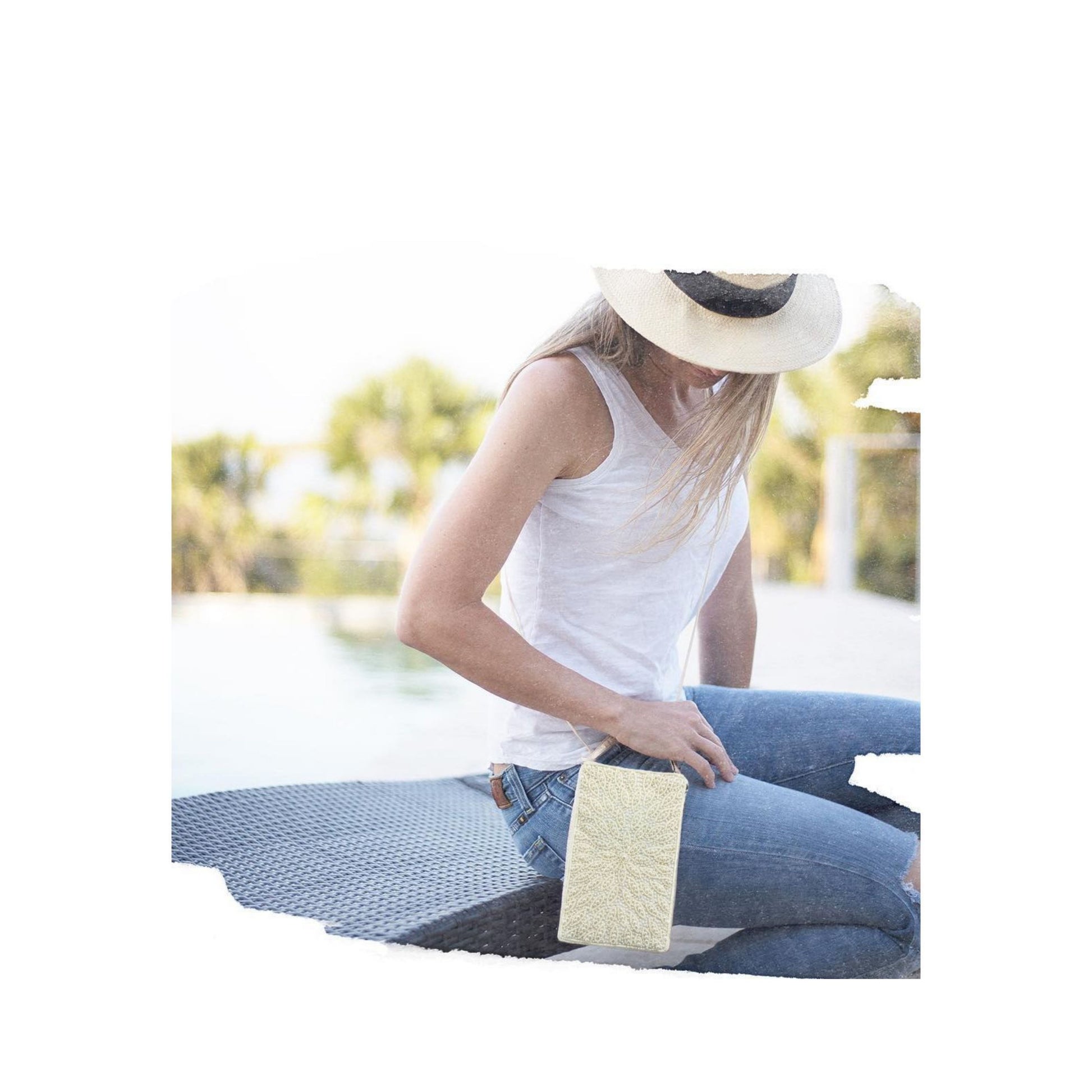 The Liya Pearl Flower Bag is beautifully beaded and pearled featuring a large pearl in the center of the design. Includes a 54" crossbody strap that can tuck inside when not in use, a short wristlet bracelet strap that unsnaps so the bag can be attached to a larger bag or belt, and a separate, secure side zip pocket for cash and credit cards. Beautiful hand embroidered and beaded upper. Dimensions: 4.5 inches wide x 7.5 inches high