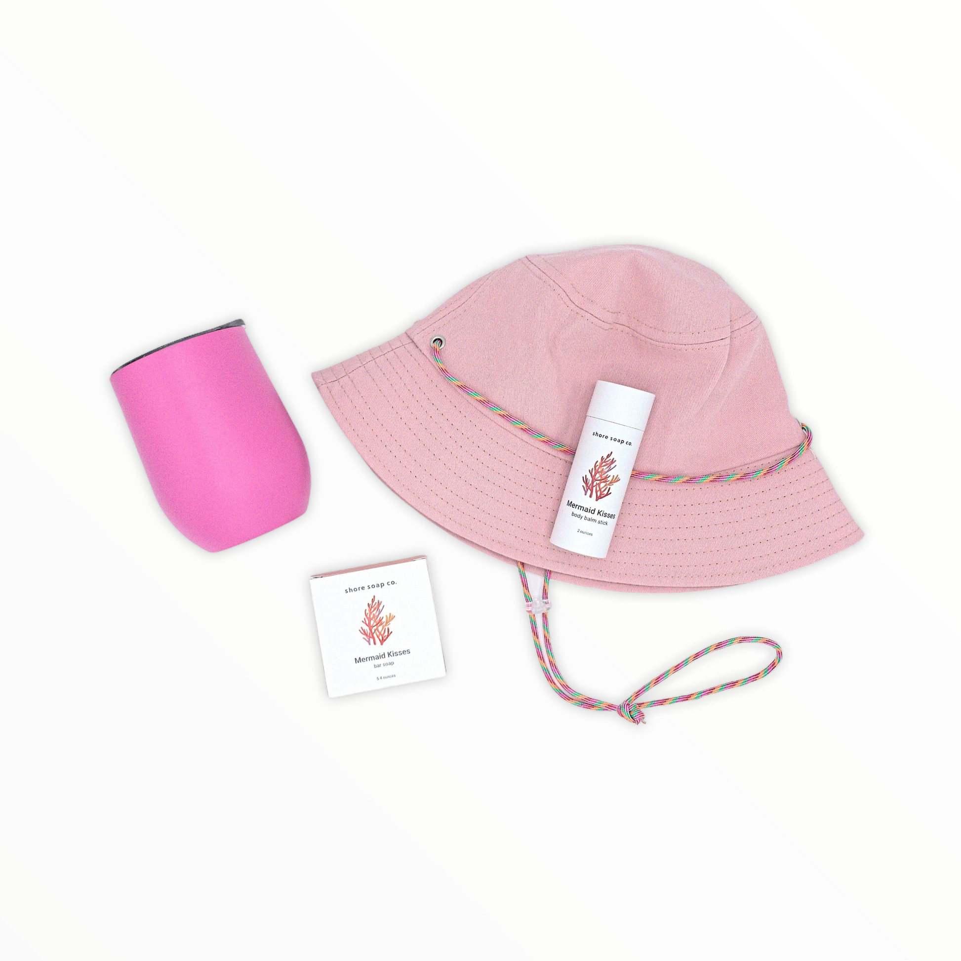 Chin String Pink Sun Bucket Hat, 100% Cotton
